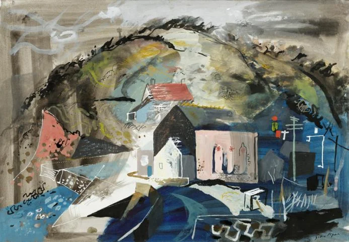 Among the paintings on display was this work by John Piper. The British landscape is a setting he returns to time and again and this work entitled ‘Portholland, Cornwall’ is a classic example of this. His paintings of towns have in many ways become archives of these sites. We were particularly intrigued in this work for its mixture of both figurative and abstract styles.