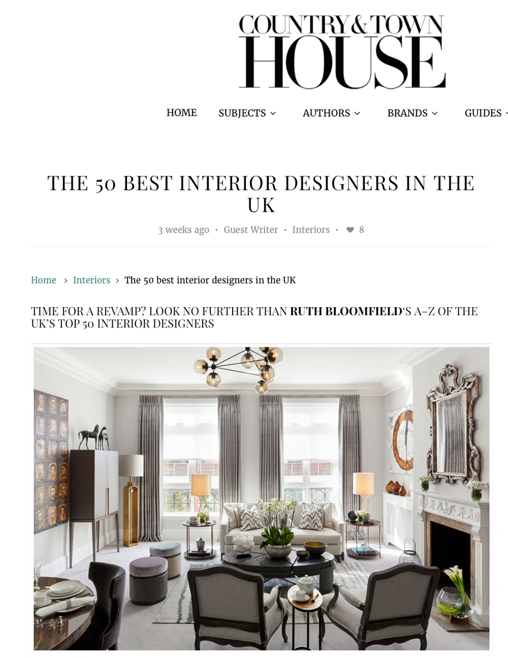 Country & Town House November 28, 2016 Philippa Devas - Devas Designs in 'The 50 Best Interior Designers in the UK' list in Country and Town House - View fullsize View fullsize
